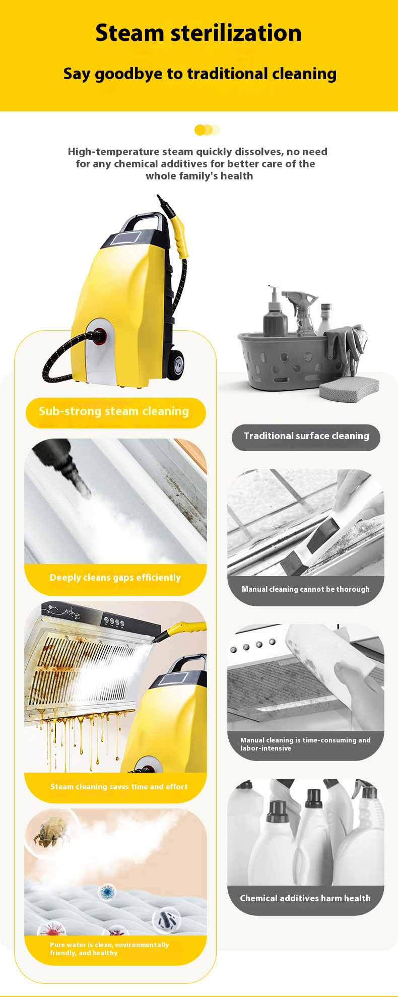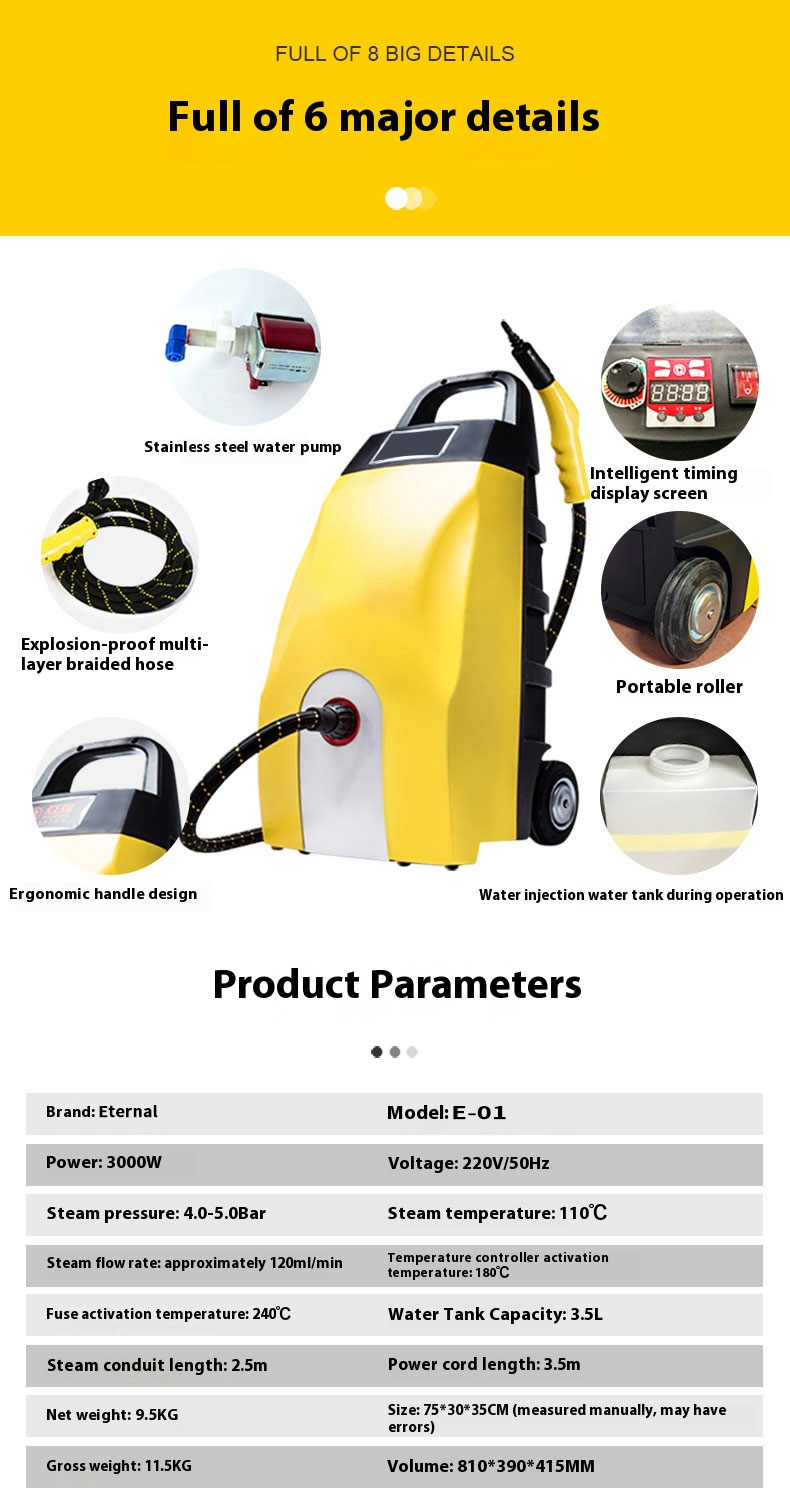 Steam Cleaner for Kitchen Oil Stains, High-Temperature Cleaning, Carpet, Sofa and Mattress